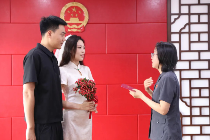 前进区民政局婚姻登记处负责人肖茜表示:“2023年佳木斯中院“青苗”工作室进驻登记处后,常态化开展结婚登记新人普法、婚姻登记员法律培训、关爱未成年人提示等工作,力促家庭的和谐与稳定。本次佳木斯中院首次设计和推出“闯关式”领证流程,将法律知识普及与趣味游戏巧妙结合,既强化了婚姻登记的仪式感,又传递了“婚姻始于浪漫,忠于责任”的价值观,让新人真正感受到领证的幸福与责任。