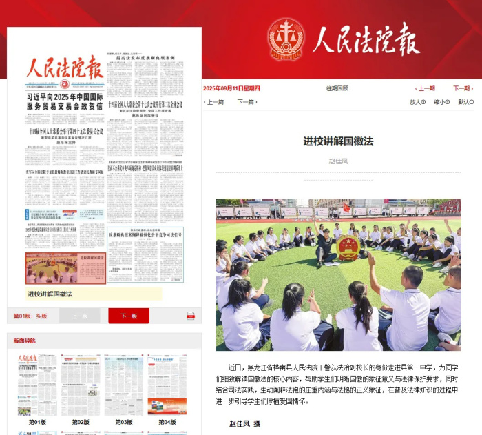 走前列 创样板 谱新篇|《人民法院报》头版:桦南法院进校园讲解国徽法