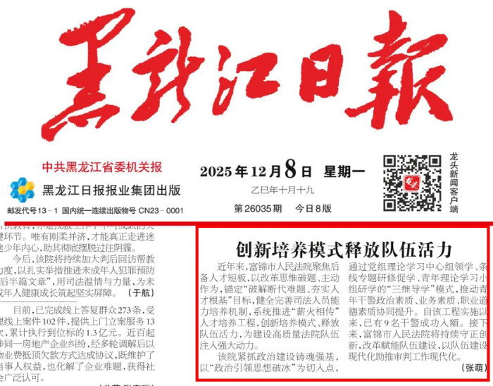 近年来,富锦市人民法院聚焦后备人才短板,以改革思维破题、主动作为,锚定“破解断代难题、夯实人才根基”目标,健全完善司法人员能力培养机制,系统推进“薪火相传”人才培养工程,创新培养模式、释放队伍活力,为建设高质量法院队伍注入强大动力。