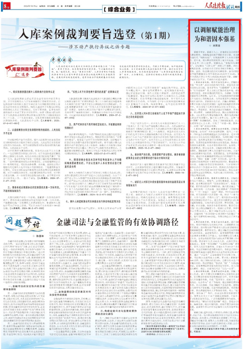 人民法院报丨以调解赋能治理 为和谐固本强基 发布时间:2026-02-02 15:59:03