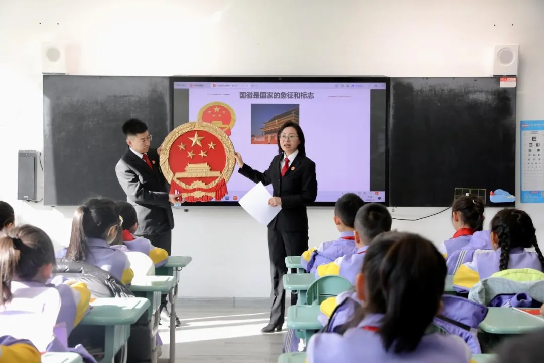 “起来!不愿做奴隶的人们——”第十九小学的教室里,国歌声格外嘹亮。佳木斯中院的法治副校长带来一堂“有温度”的法治课。没有生硬的法条,只有亲切的讲解:国旗的红色象征着什么?国徽上的图案有什么含义?法官用一个个小故事,把国家象征的神圣意义种进孩子们心里。“侮辱国旗要承担法律责任!”“升国旗时要肃立行礼!”互动环节,孩子们争先恐后地分享自己的收获。这堂课,让法治的种子和爱国的情怀,在春日校园里一同绽放。