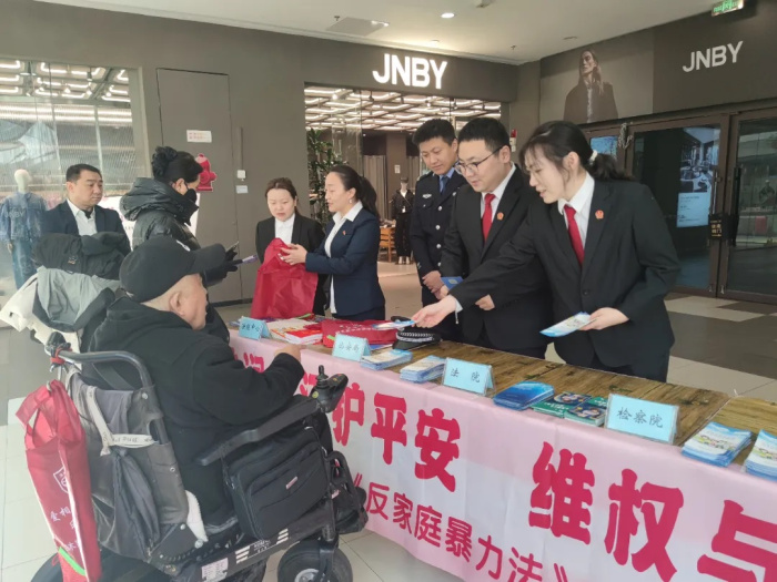 为纪念《反家庭暴力法》实施十周年,进一步增强全社会反家暴意识,切实维护妇女儿童等家庭成员合法权益。3月5日上午,佳木斯中院联合市检察院、市公安局、市妇联等单位,共同开展“法润龙江护平安,维权与爱同行”反家暴主题宣传活动。