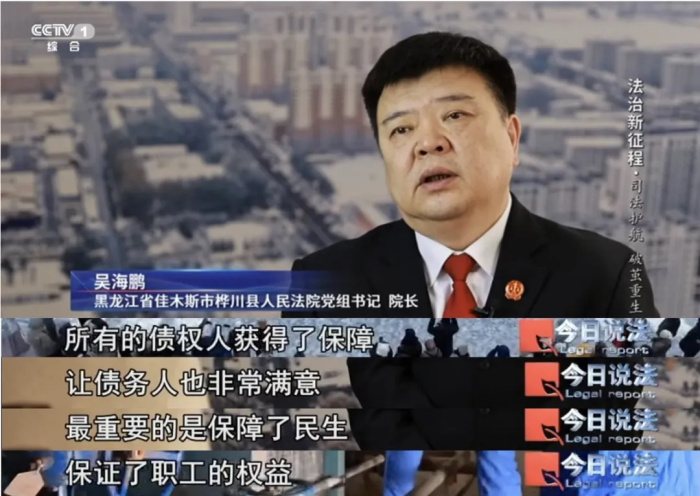 3月9日,央视一套《今日说法》两会特别节目《法治新征程》播出的《司法护航破茧重生》中,用近半小时的时长,深度报道了桦川法院高效审结桦川某热电有限公司破产重整案的创新实践。